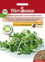 BIO-Keimsprossen Sonnenblumen werden aus geschälten Sonnenblumenkernen gezogen und am besten bei einer Länge von 1,2 - 2 cm geerntet. Ihr kräftig nussartiger Geschmack passt sehr gut zu Speisen wie Salat, Käse, Früchte und zur Deko.